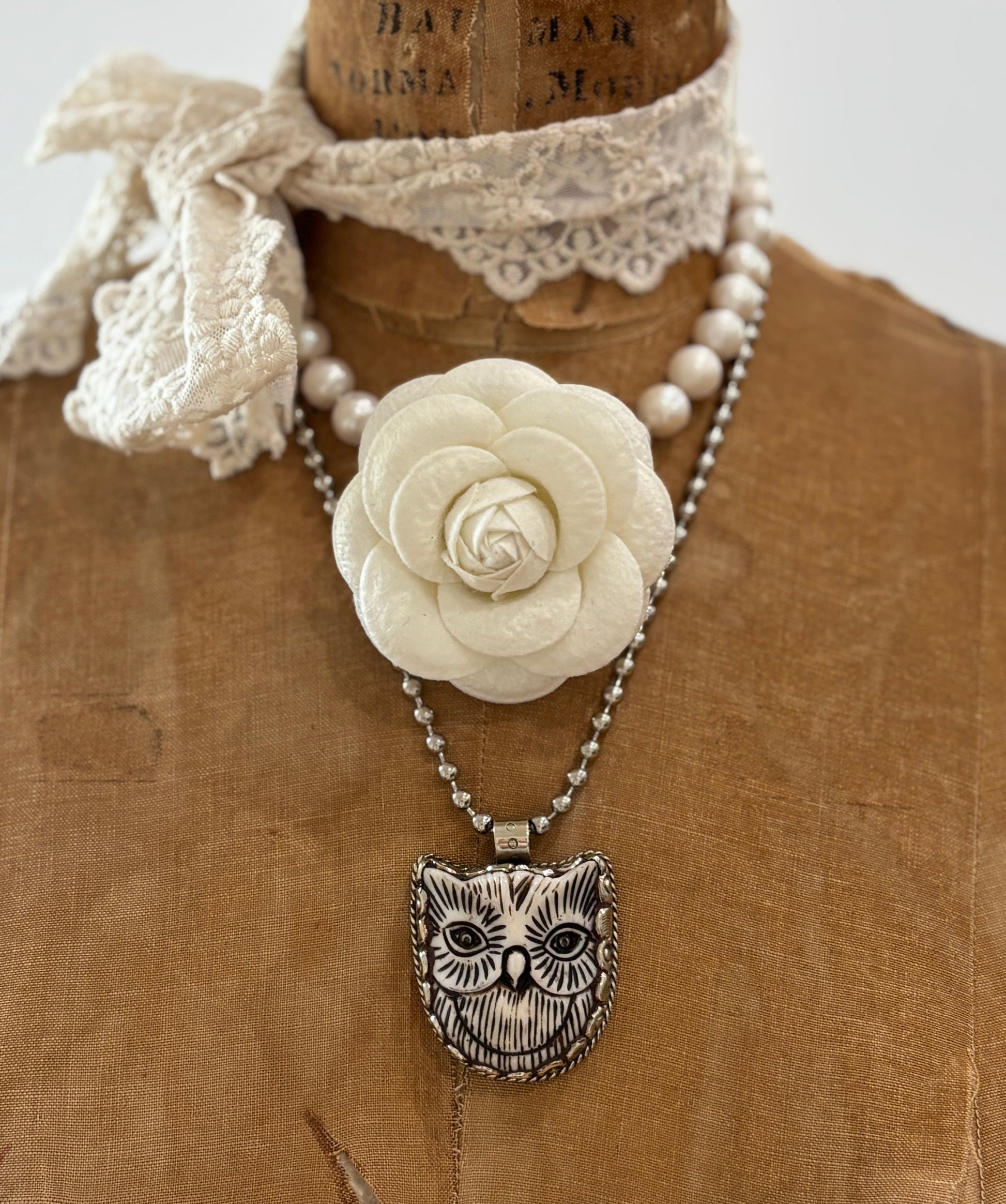 Elegant freshwater pearl necklace featuring lustrous round pearls hand-knotted on silk. A timeless classic, perfect for weddings, special occasions, or elevating everyday style. Natural beauty and sophistication in one piece. Comes with of without the flower pin.