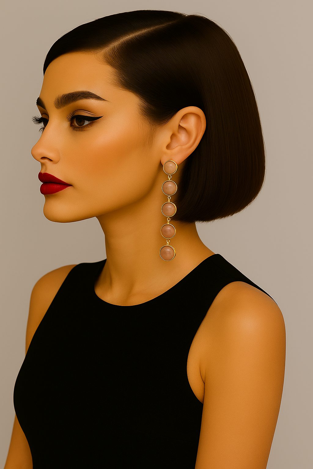 Elegant peach moonstone dangle earrings with faceted round stones set in gold. Handmade statement jewelry that adds a soft, feminine glow—perfect for weddings, special occasions, or everyday chic style.